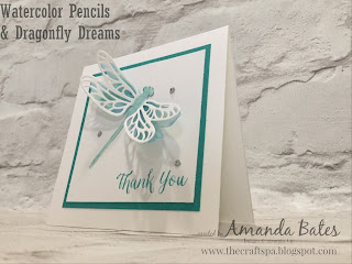 Die cut a Thick Whisper White smaller Detailed Dragonfly... scribble Bermuda Bay pencil over the body and activate using your Clear Wink of Stella to get shimmer at the same time...