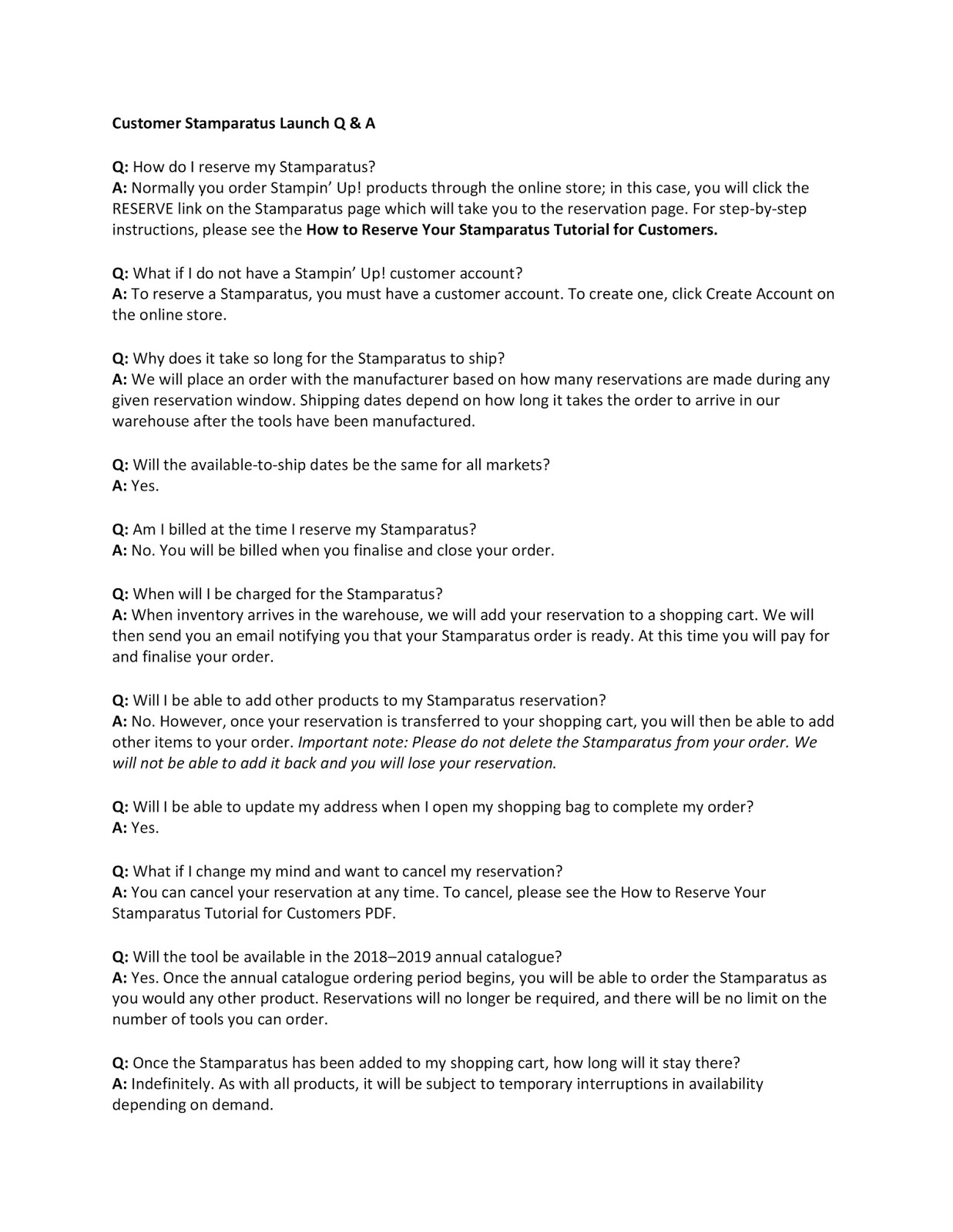 - With the launch of this tool, Stampin'Up! are trying something different: testing a new reservation system that will allow them to get the product to market - and in your hands - as soon as possible. And it acts like a true pre-order. You reserve your spot and they guarantee shipment as soon as the product arrives in the warehouse.The global launch will feature three reservation windows.